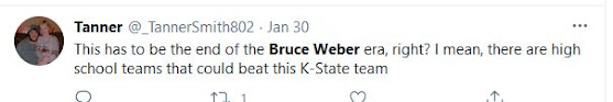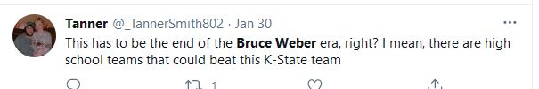 Up next for K-State are games at Kansas and then Texas Tech and Texas at home. All are ranked in the top 15. Looks like it’s going to get much worse before it gets better for the Wildcats.