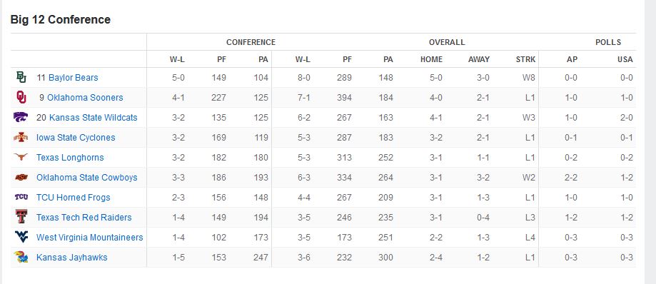 Here are the current Big 12 standings: