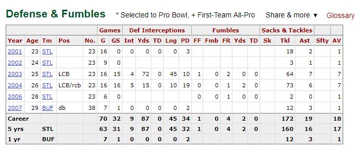 Jerametrius Butler was drafted in the 5th round, number 145 overall, by the St. Louis Rams. Butler played six seasons in the NFL, five for the Rams and one for the Buffalo Bills. He had a pretty bad knee injury in 2005 that caused him to sit out the season and he never fully recovered, eventually retiring. His stats, according to Pro Football Reference, are below:
